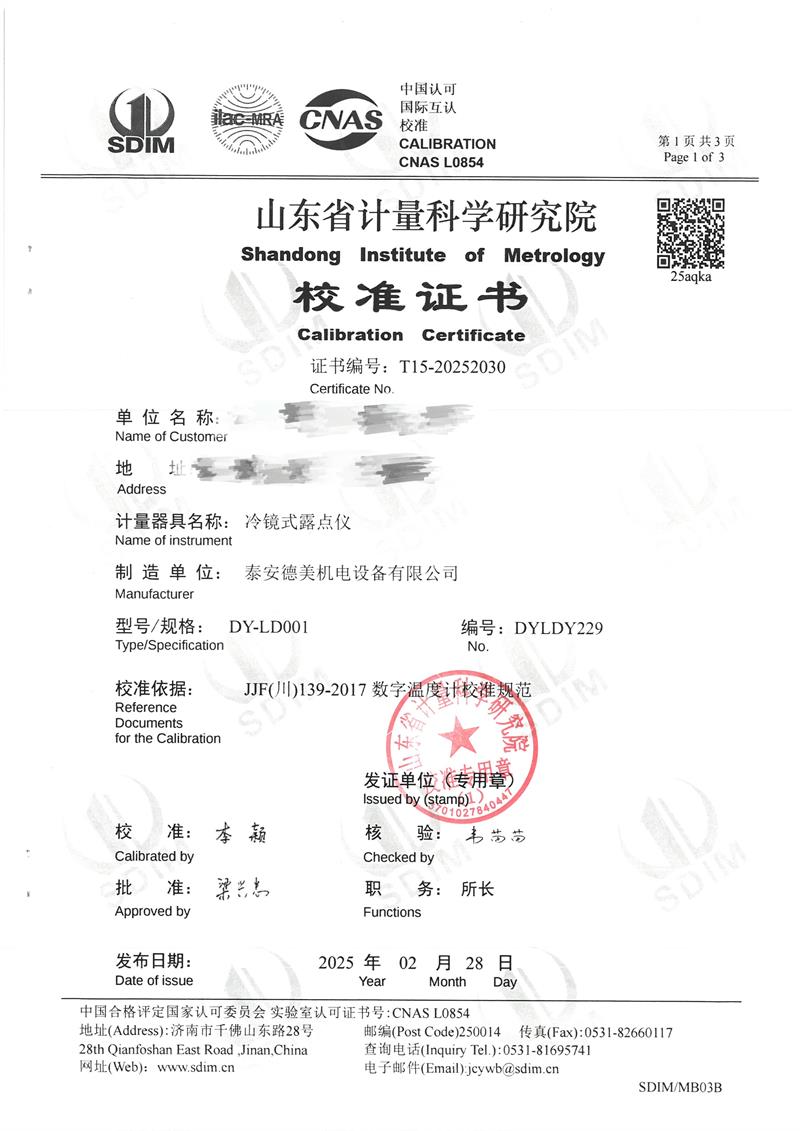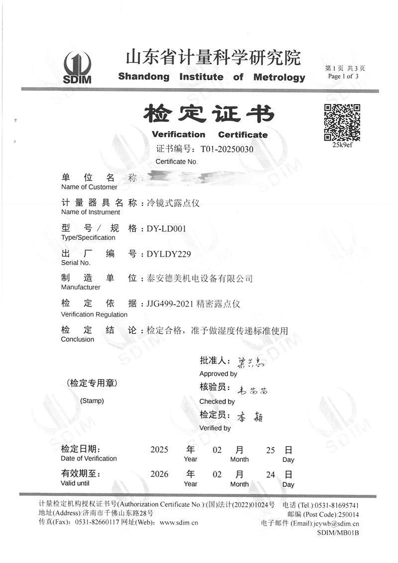 露點(diǎn)儀檢定、校準(zhǔn)證書 2025-3-8 本文被閱讀 4961 次