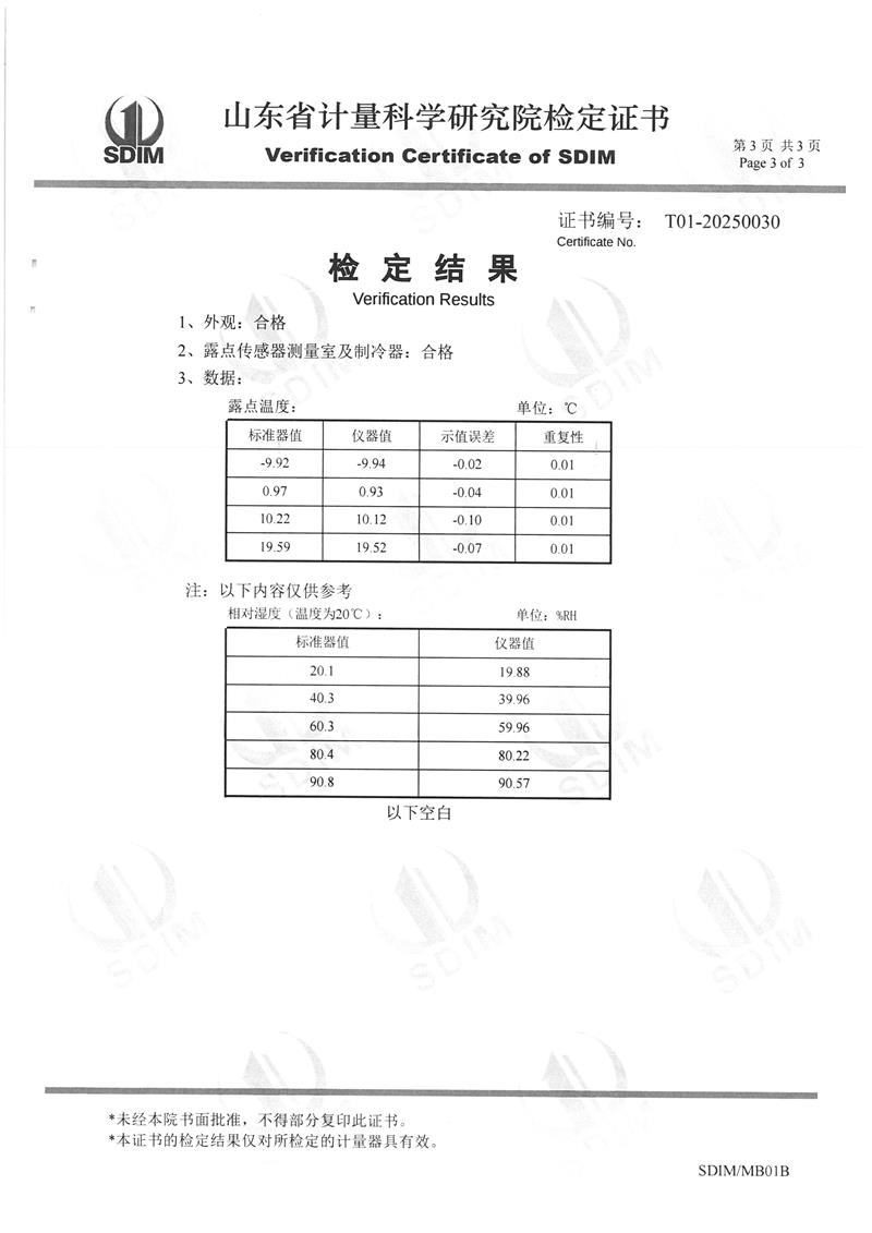 露點(diǎn)儀檢定、校準(zhǔn)證書
