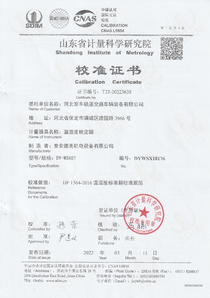 河北京車軌道交通車輛裝備有限公司-溫濕度檢定箱 2022-3-18 本文被閱讀 14832 次