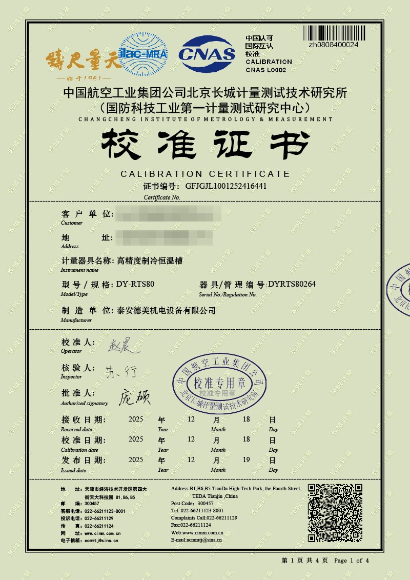 | 上一條:高精度制冷恒溫槽(0~100℃)-校準(zhǔn)證書 | 下一條:廉金屬熱電偶檢定爐-校準(zhǔn)證書 |