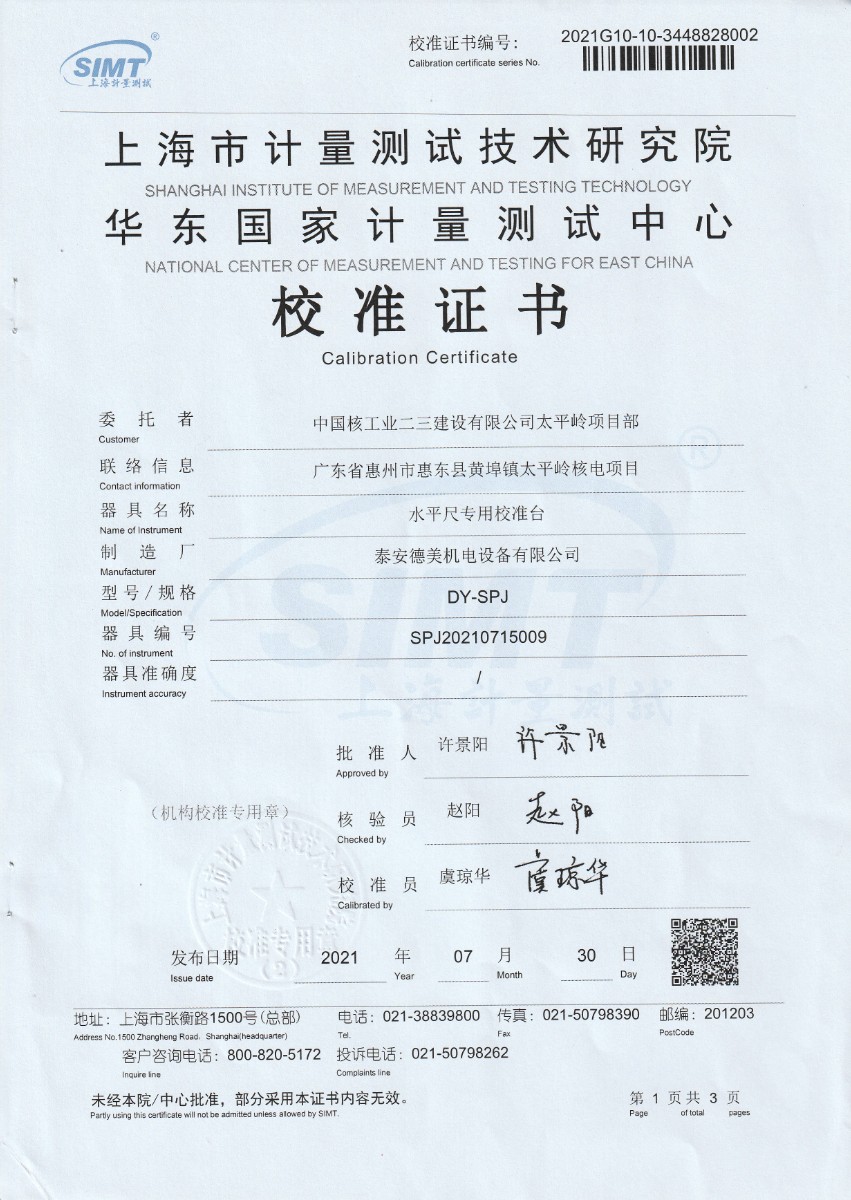 | 上一條:中國核工業(yè)二三建設(shè)有限公司太平嶺項(xiàng)目部-標(biāo)準(zhǔn)鉑電阻溫度計(jì) | 下一條:廉金屬熱電偶檢定爐-校準(zhǔn)證書 |