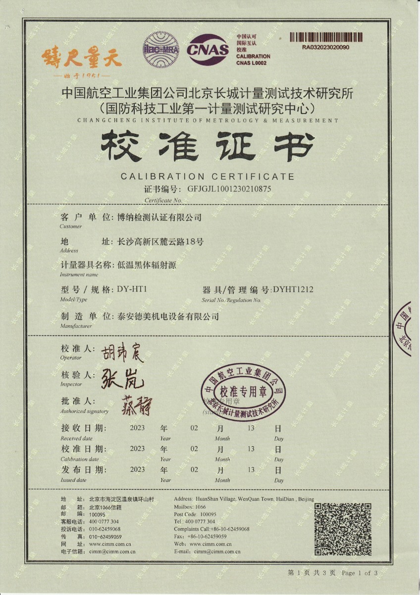 | 上一條:晶科能源(海寧)有限公司 冷鏡式露點(diǎn)儀(溫度) 校準(zhǔn)證書 | 下一條:廉金屬熱電偶檢定爐-校準(zhǔn)證書 |