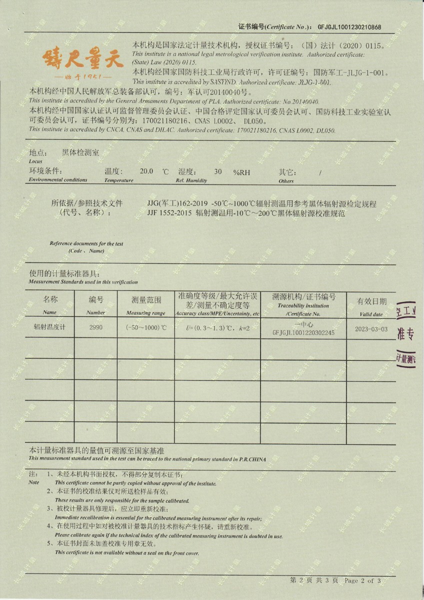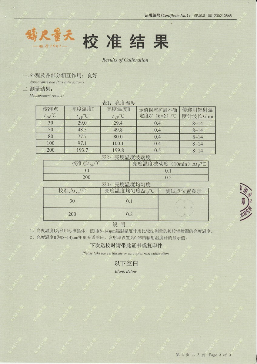 | 上一條:西安和其光電科技股份有限公司 低溫浴式黑體輻射源 校準證書 | 下一條:廉金屬熱電偶檢定爐-校準證書 |