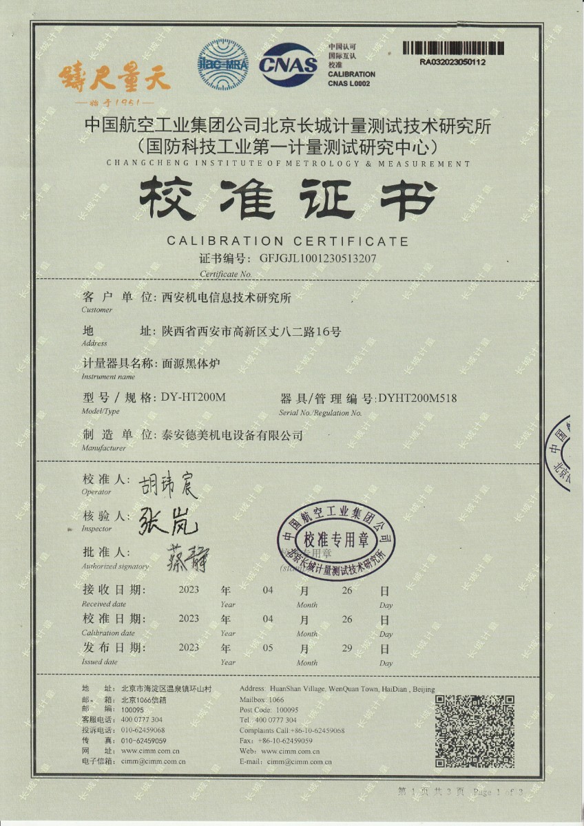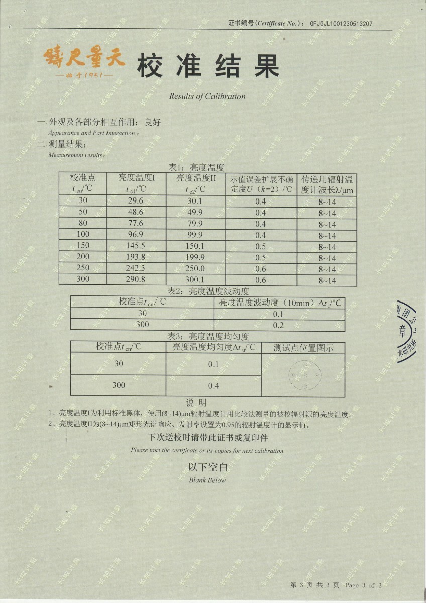| 上一條:云南馳宏國際鍺業(yè)有限公司 面源黑體校準(zhǔn)證書 | 下一條:廉金屬熱電偶檢定爐-校準(zhǔn)證書 |