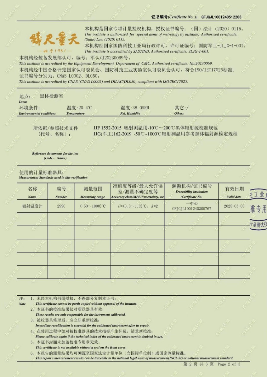 高精度低溫黑體241校準證書