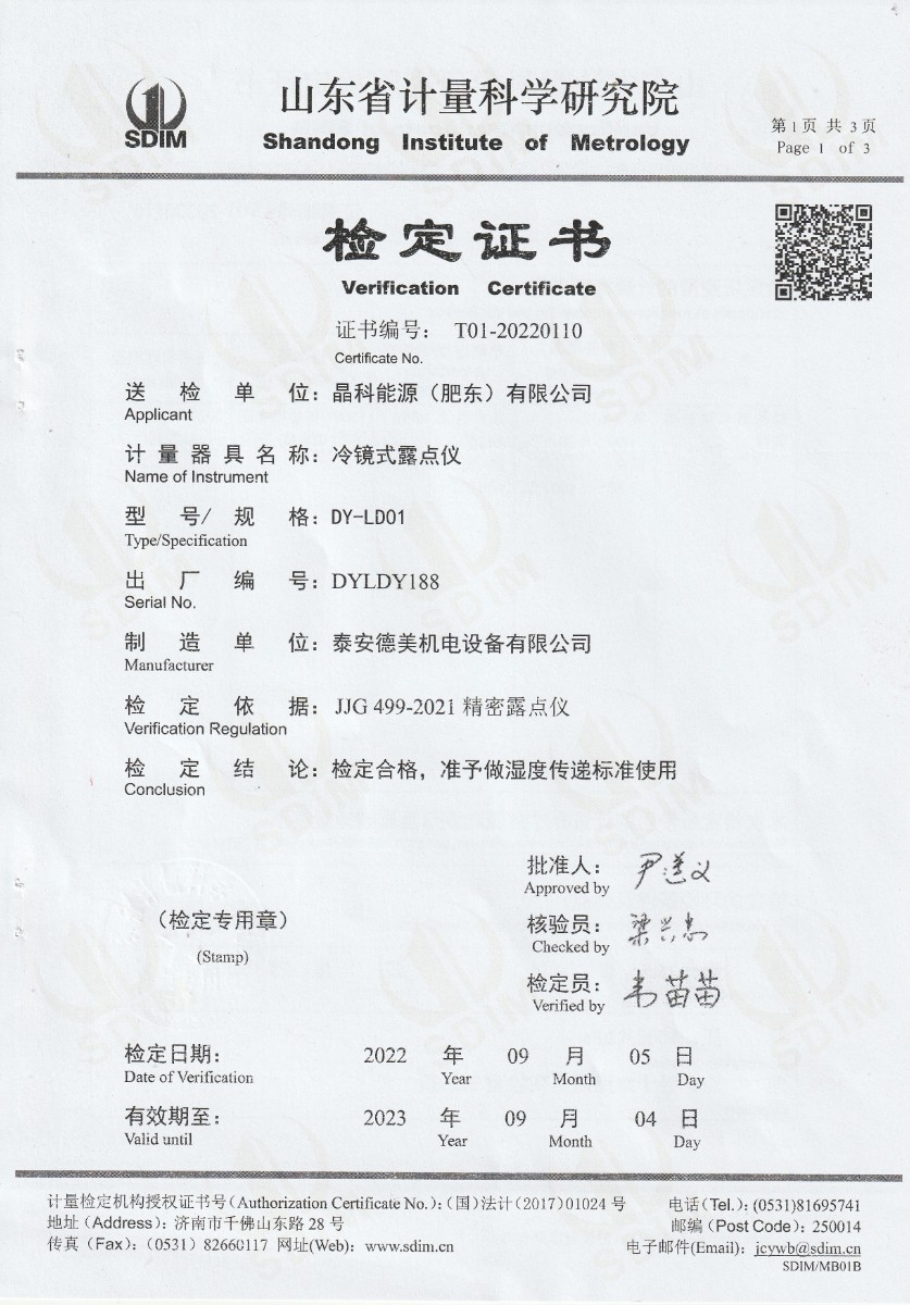 | 上一條:晶科能源(肥東)有限公司-溫濕度檢定箱 | 下一條:廉金屬熱電偶檢定爐-校準(zhǔn)證書 |